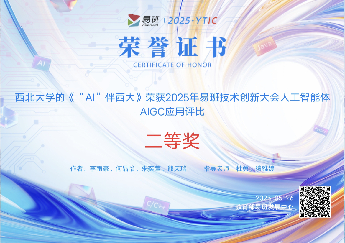 近年来,赢博官方(中国)总部易班发展中心荣获国家级奖项10余项。下一步,易班发展中心将以AI技术为引擎,深化“三全育人”与数字化融合,推动更多创新成果落地,为培养适应数字时代的高素质人才贡献西大智慧。