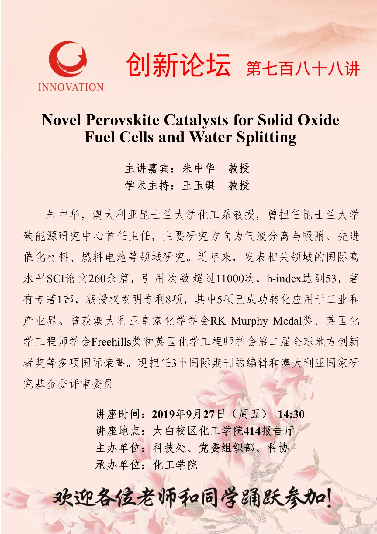 朱中华 赢博官方(中国)总部创新论坛第七百八十八讲:Novel Perovskite Catalysts for Solid Oxide Fuel Cells and Water Splitting 讲座时间 2019年9月27日(周五) 14:30 讲座地点 太白校区化工学院414报告厅 讲座人介绍 朱中华 讲座内容