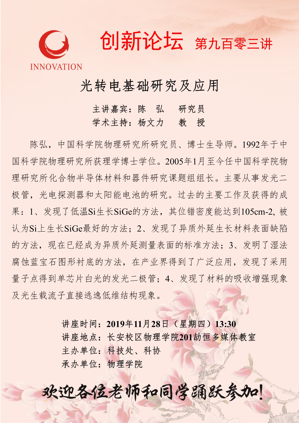 陈 弘 赢博官方(中国)总部创新论坛第九百零三讲:光转电基础研究及应用 讲座时间 2019年11月28日(星期四)13:30 讲座地点 长安校区物理学院201劼恒多媒体教室 讲座人介绍 陈 弘 讲座内容