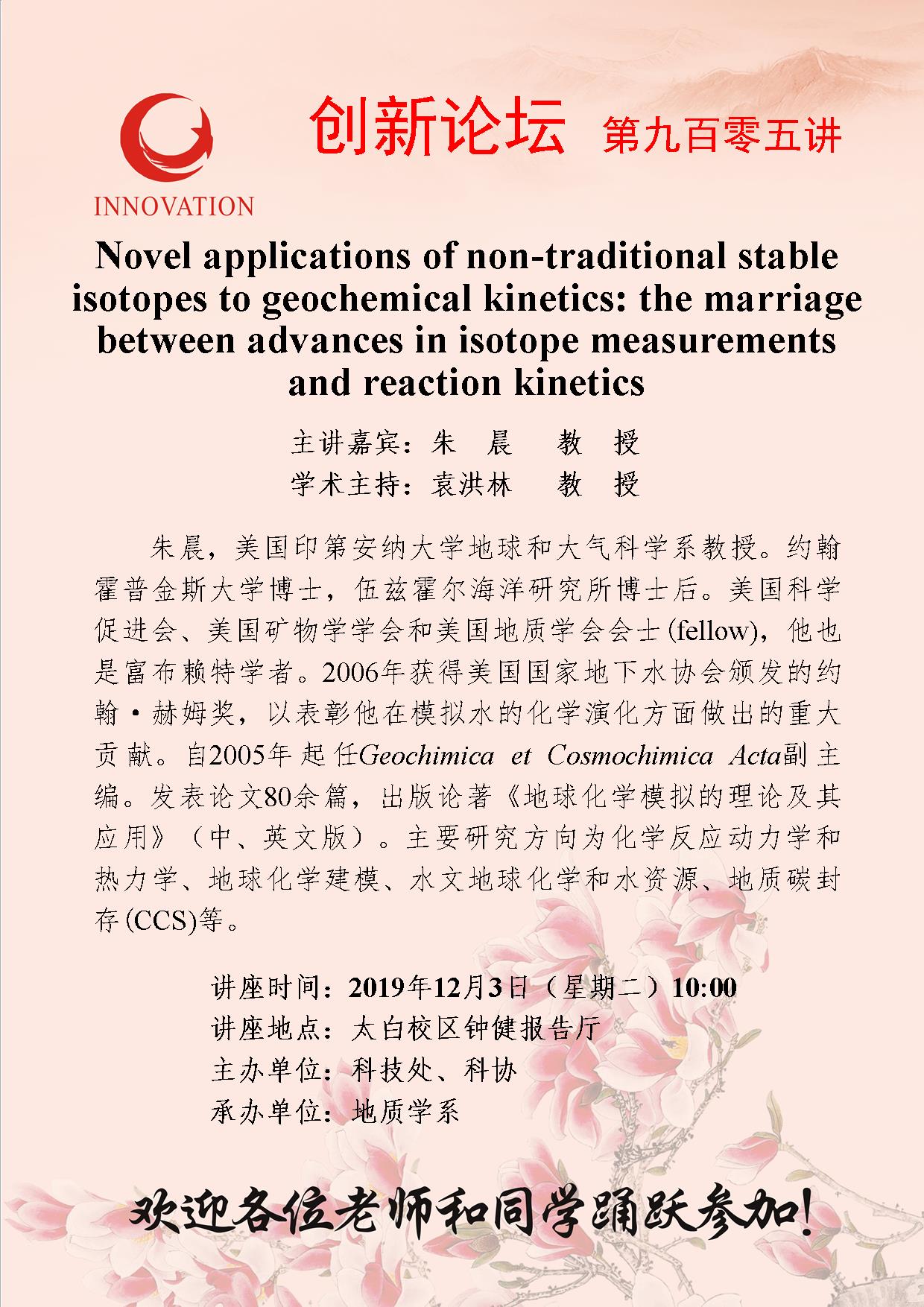 朱晨 赢博官方(中国)总部创新论坛第九百零五讲:Novel applications of non-traditional stable isotopes to geochemical kinetics: the marriage between advances in isotope measurements and reaction kinetics 讲座时间 2019年12月3日(星期二)10:00 讲座地点 太白校区钟健报告厅 讲座人介绍 朱晨 讲座内容
