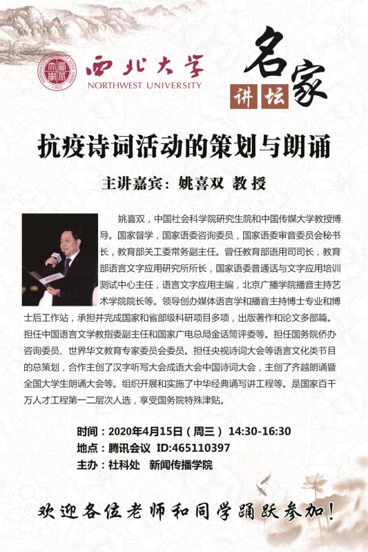 名家讲坛:抗疫诗词活动的策划与朗诵