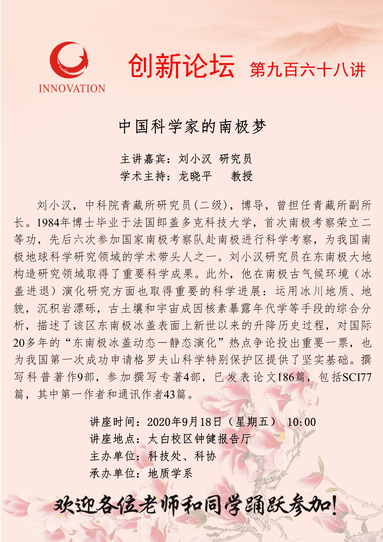 赢博官方(中国)总部创新论坛第九百六十八讲:中国科学家的南极梦