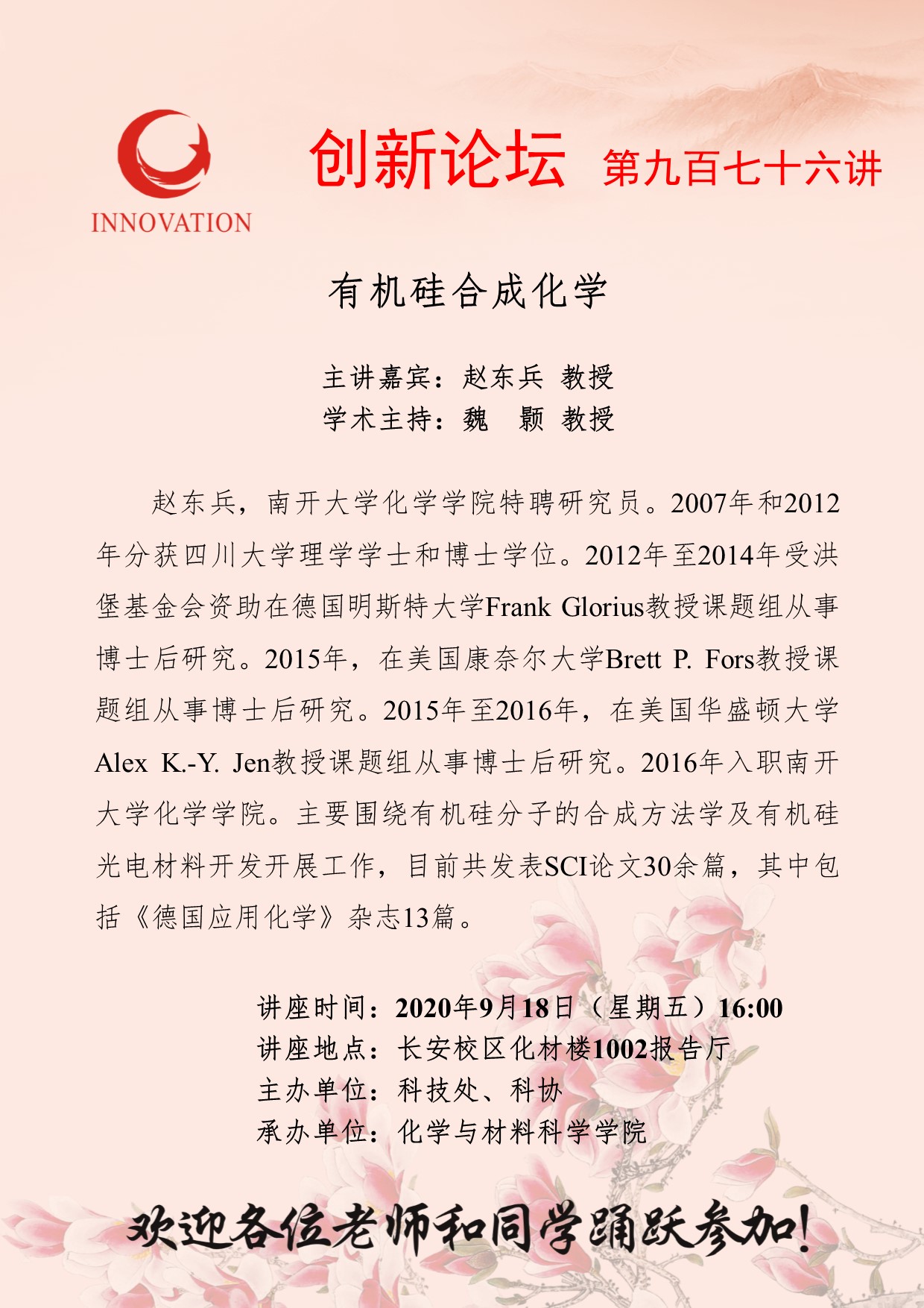 赢博官方(中国)总部创新论坛第九百七十六讲:有机硅合成化学