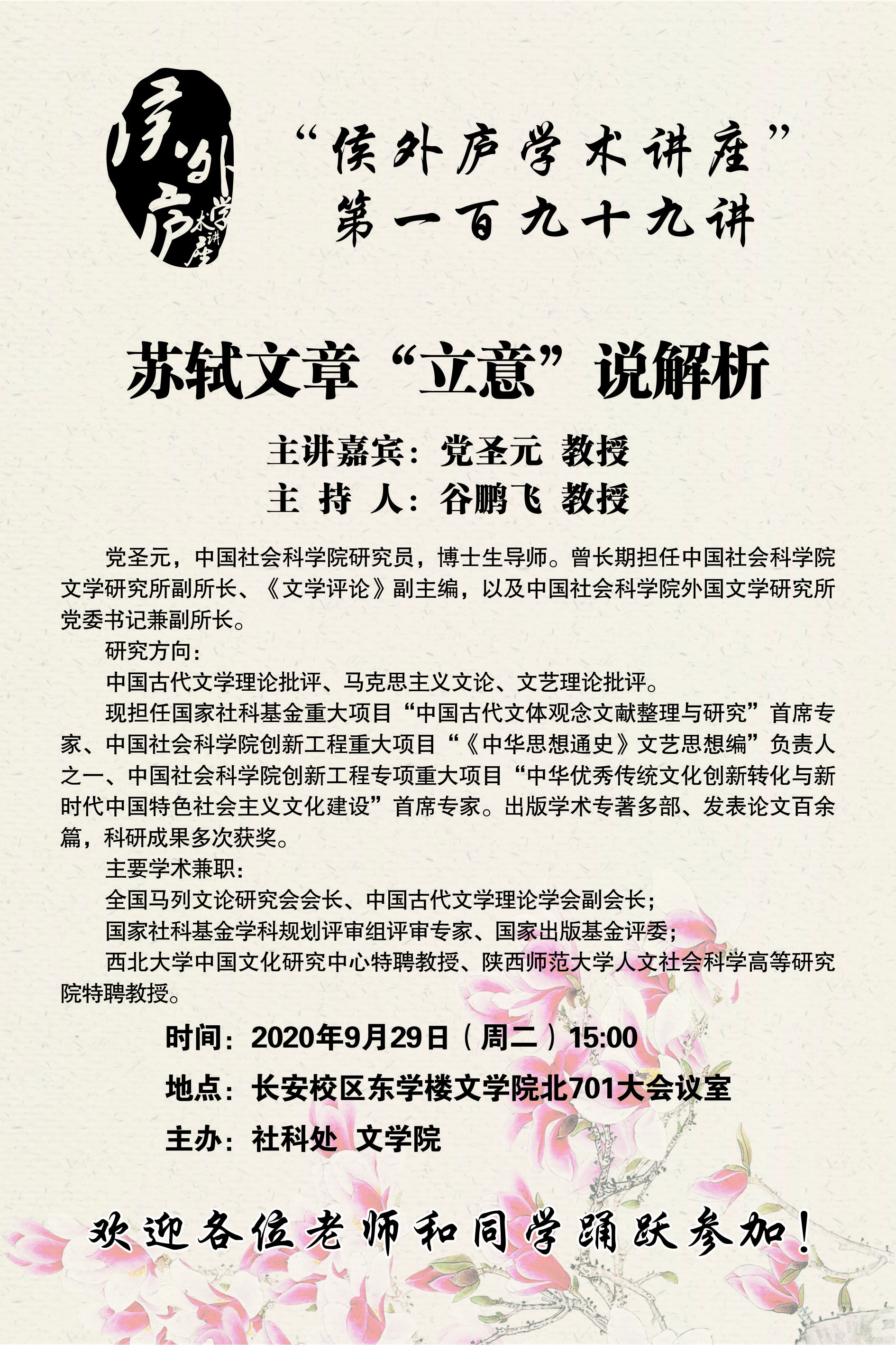 侯外庐学术讲座第一百九十九讲:苏轼文章“立意”说解析