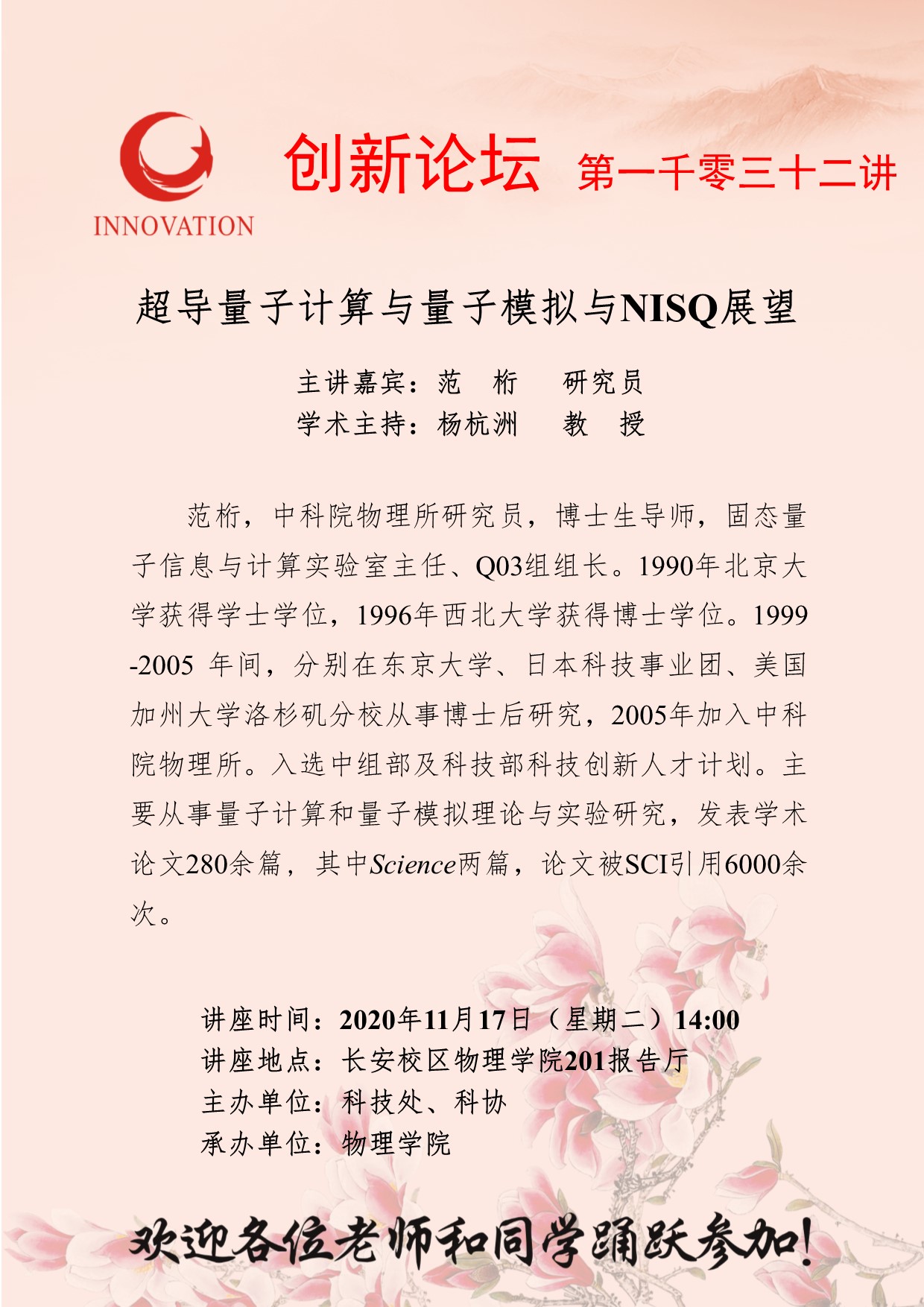 范 桁 研究员 赢博官方(中国)总部创新论坛第一千零三十二讲:超导量子计算与量子模拟与NISQ展望 讲座时间 2020年11月17日(星期二)14:00 讲座地点 长安校区物理学院201报告厅 讲座人介绍 范 桁 研究员 讲座内容