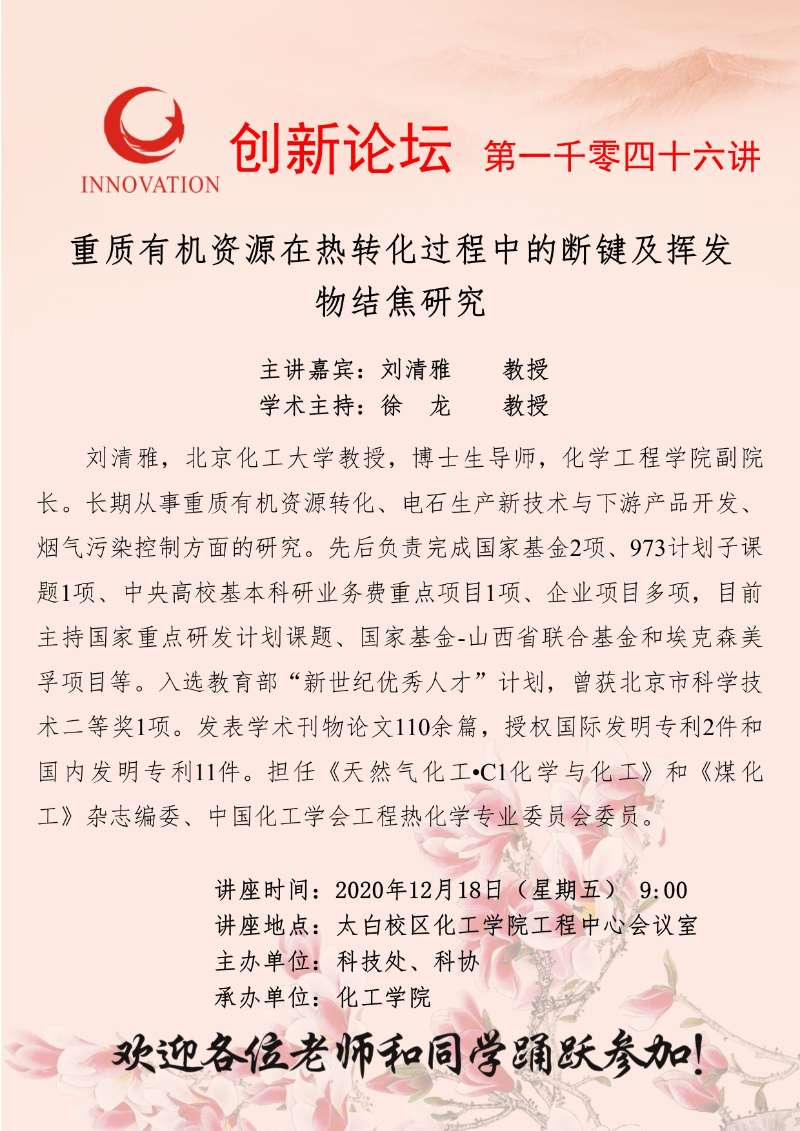 刘清雅 教授 赢博官方(中国)总部创新论坛第一千零四十六讲:重质有机资源在热转化过程中的断键及挥发物结焦研究 讲座时间 2020年12月18日(星期五) 9:00 讲座地点 太白校区化工学院工程中心会议室 讲座人介绍 刘清雅 教授 讲座内容