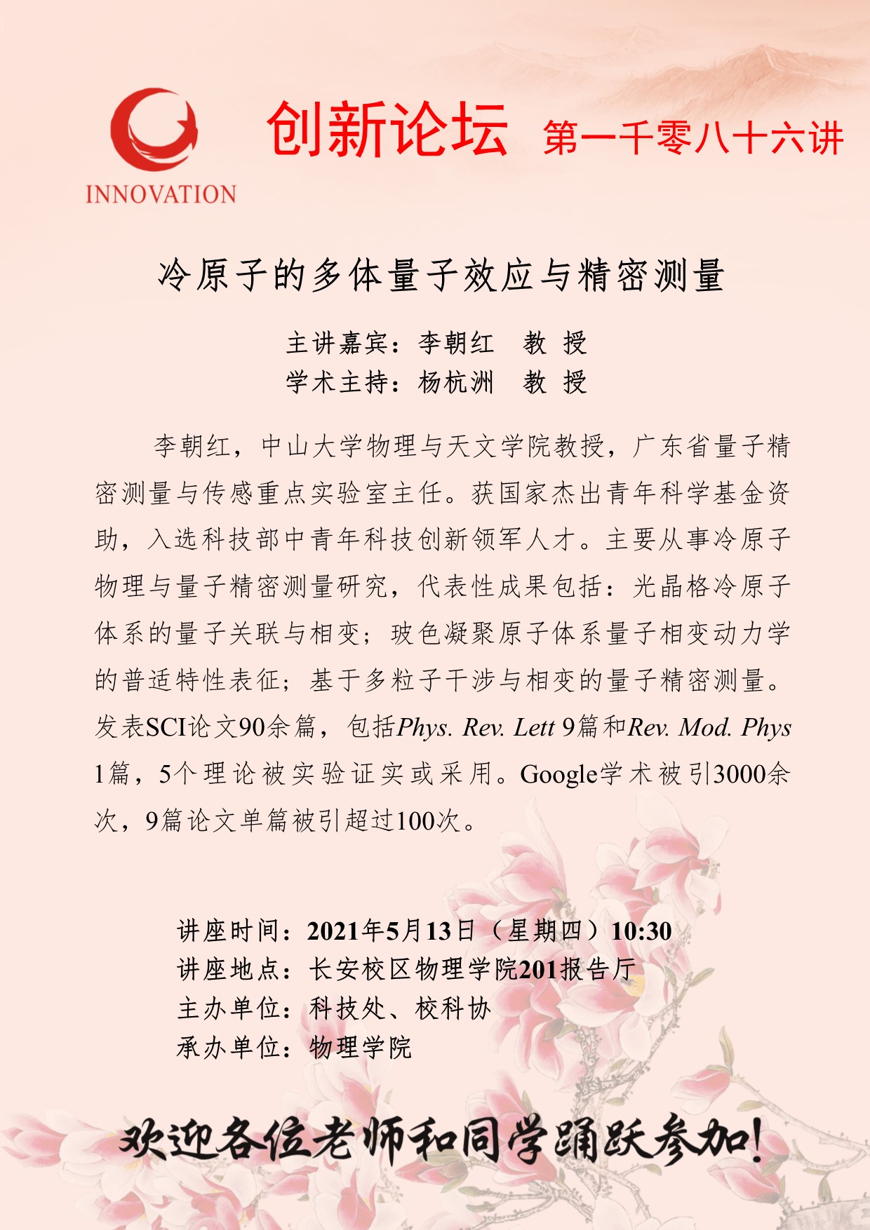 李朝红 教 授 赢博官方(中国)总部创新论坛第一千零八十六讲:冷原子的多体量子效应与精密测量 讲座时间 2021年5月13日(星期四)10:30 讲座地点 长安校区物理学院201报告厅 讲座人介绍 李朝红 教 授 讲座内容