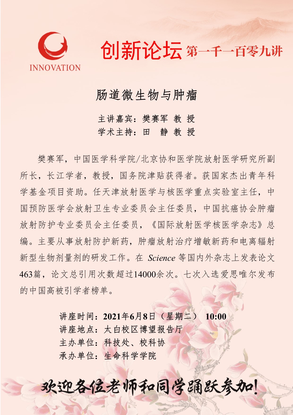 赢博官方(中国)总部创新论坛第一千一百零九讲:肠道微生物与肿瘤
