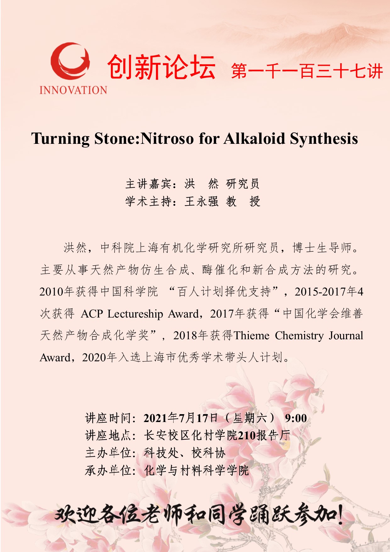 洪然 研究员 赢博官方(中国)总部创新论坛第一千一百三十七讲:Turning Stone:Nitroso for Alkaloid Synthesis 讲座时间 2021年7月17日(星期六) 9:00 讲座地点 长安校区化材学院210报告厅 讲座人介绍 洪然 研究员 讲座内容