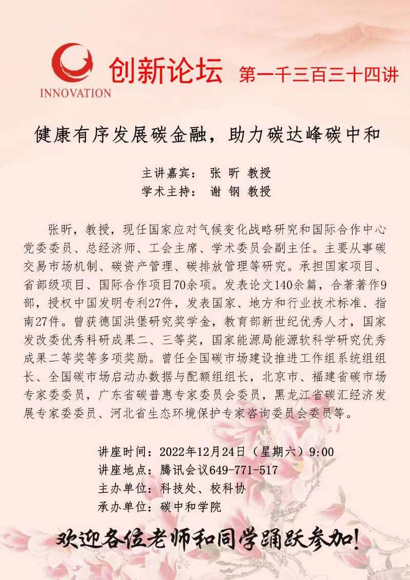 张昕 教授 赢博官方(中国)总部创新论坛第一千三百三十四讲:健康有序发展碳金融,助力碳达峰碳中和 讲座时间 2022年12月24日(星期六)9:00 讲座地点 腾讯会议649-771-517 讲座人介绍 张昕 教授 讲座内容