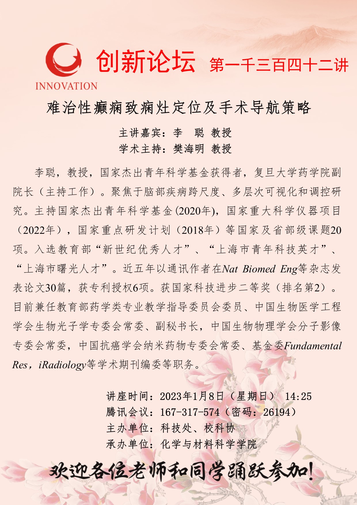李聪 教授 赢博官方(中国)总部创新论坛第一千三百四十二讲:难治性癫痫致痫灶定位及手术导航策略 讲座时间 2023年1月8日(星期日) 14:25 讲座地点 腾讯会议:167-317-574 讲座人介绍 李聪 教授 讲座内容