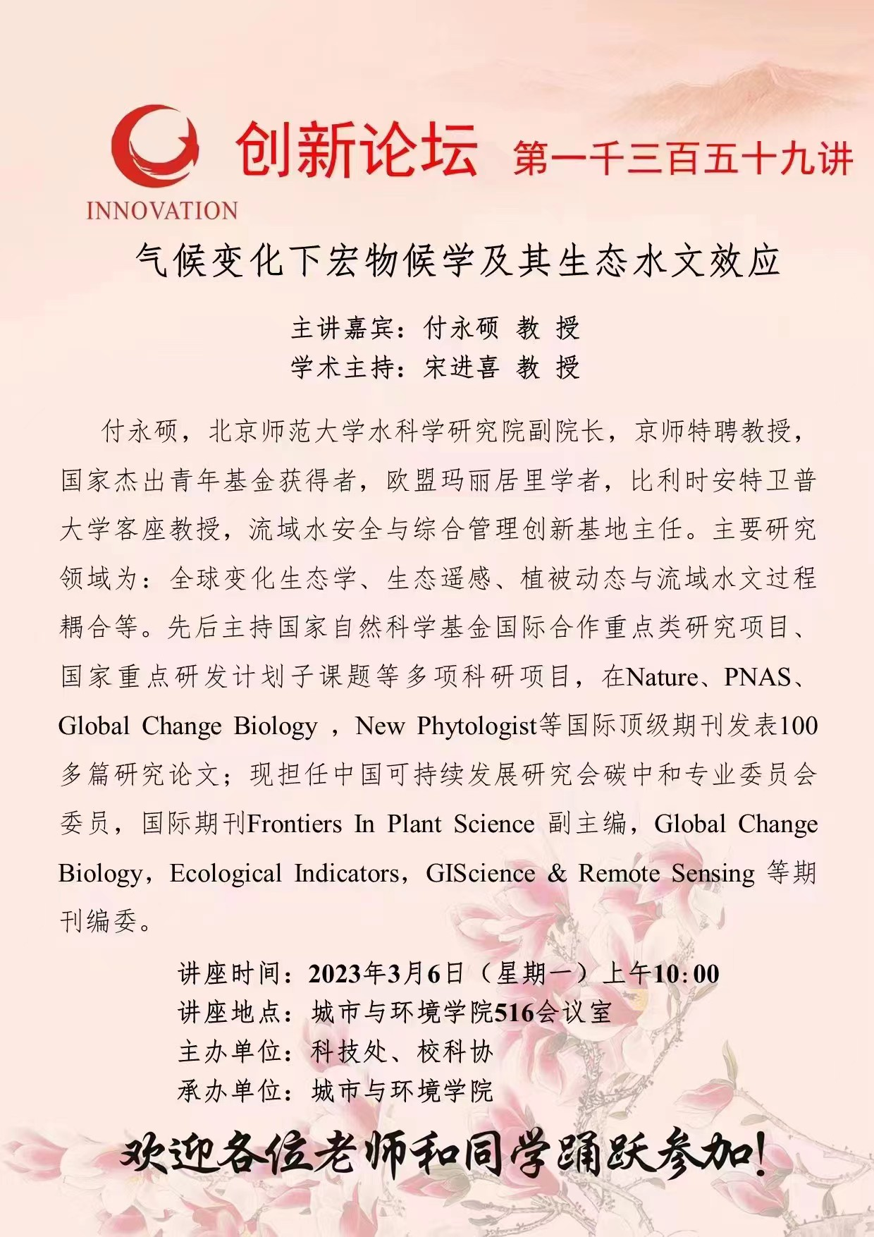 赢博官方(中国)总部创新论坛第一千三百五十九讲:气候变化下宏物候学及生态水文效应