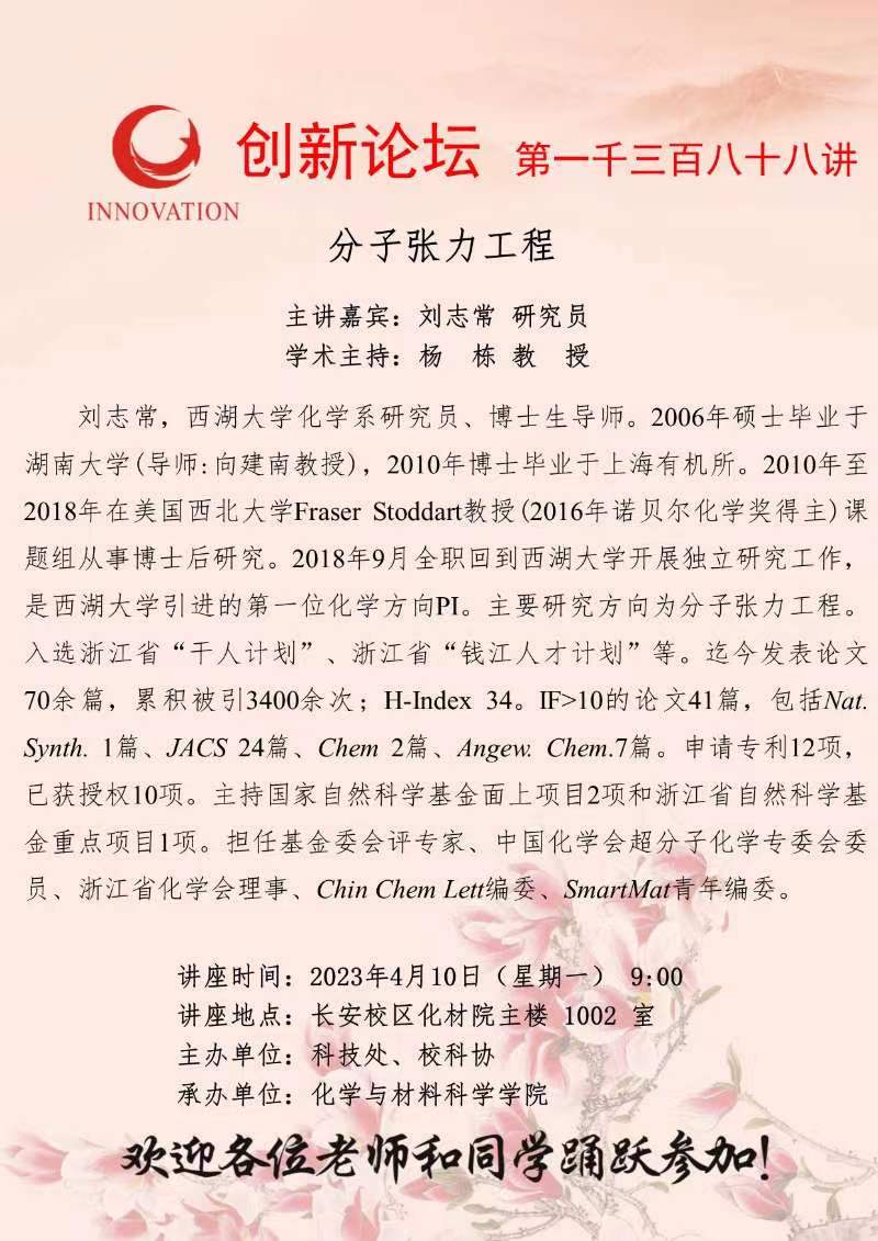 刘志常 研究员 赢博官方(中国)总部创新论坛第一千三百八十八讲:分子张力工程 讲座时间 2023年4月10日(星期一) 9:00 讲座地点 长安校区化材院主楼1002 讲座人介绍 刘志常 研究员 讲座内容