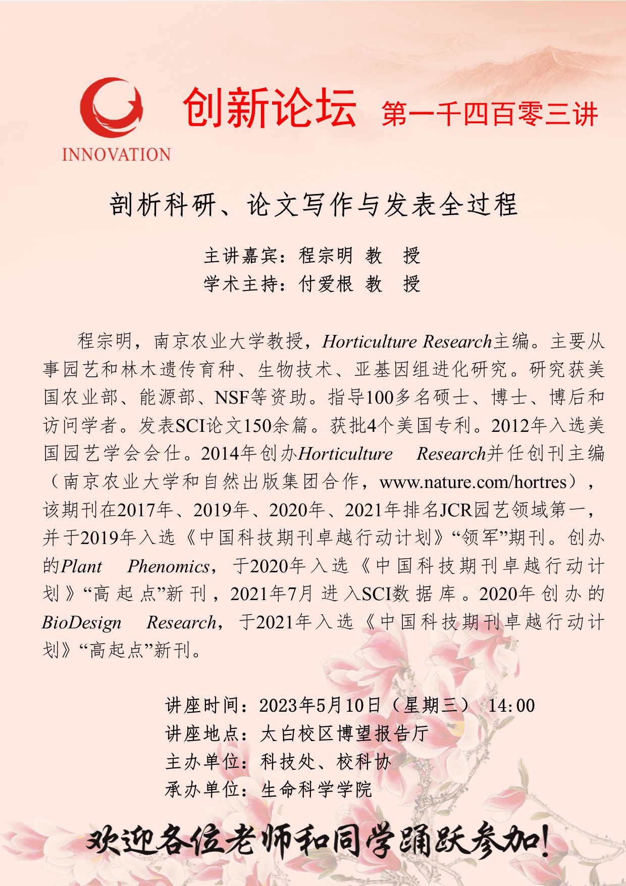 程宗明 教授 赢博官方(中国)总部创新论坛第一千四百零三讲:剖析科研、论文写作与发表全过程 讲座时间 2023年5月10日(星期三) 14:00 讲座地点 太白校区博望报告厅 讲座人介绍 程宗明 教授 讲座内容