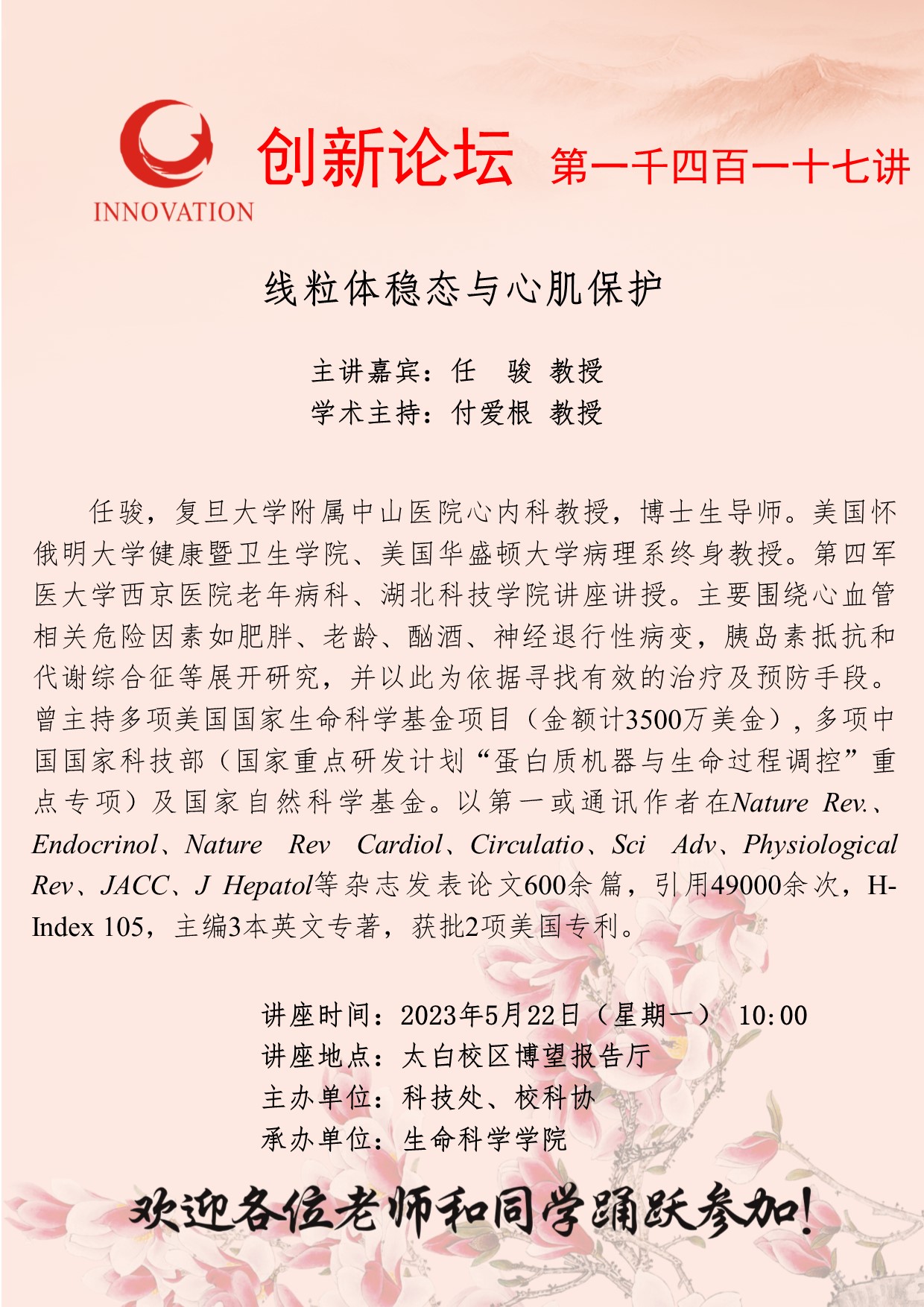 赢博官方(中国)总部创新论坛第一千四百一十七讲:线粒体稳态与心肌保护