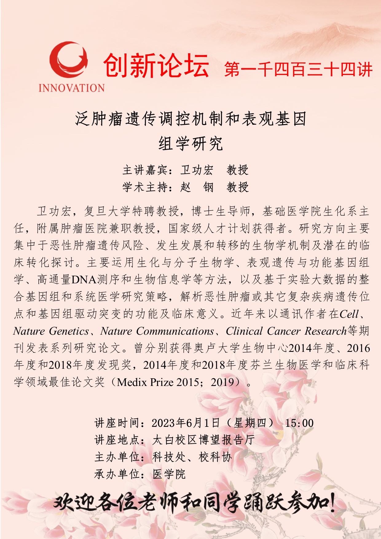 卫功宏 教授 赢博官方(中国)总部创新论坛第一千四百三十四讲:泛肿瘤遗传调控机制和表观基因组学研究 讲座时间 2023年6月1日(星期四) 15:00 讲座地点 太白校区博望报告厅 讲座人介绍 卫功宏 教授 讲座内容
