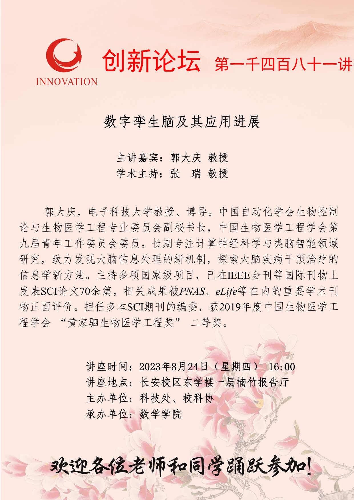 郭大庆 教授 赢博官方(中国)总部创新论坛第一千四百八十一讲:数字孪生脑及其应用进展 讲座时间 2023年8月24日(星期四) 16:00 讲座地点 长安校区东学楼一层楠竹报告厅 讲座人介绍 郭大庆 教授 讲座内容