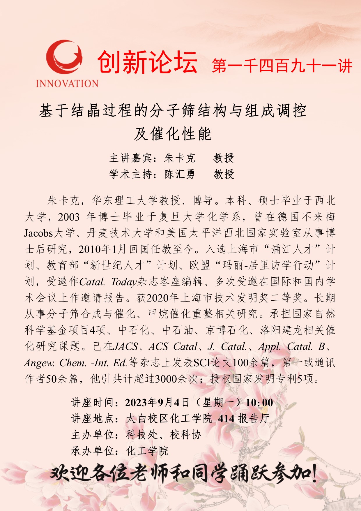 朱卡克 教授 赢博官方(中国)总部创新论坛第一千四百九十一讲:基于结晶过程的分子筛结构与组成调控及催化性能 讲座时间 2023年9月4日(星期一)10:00 讲座地点 太白校区化工学院414报告厅 讲座人介绍 朱卡克 教授 讲座内容