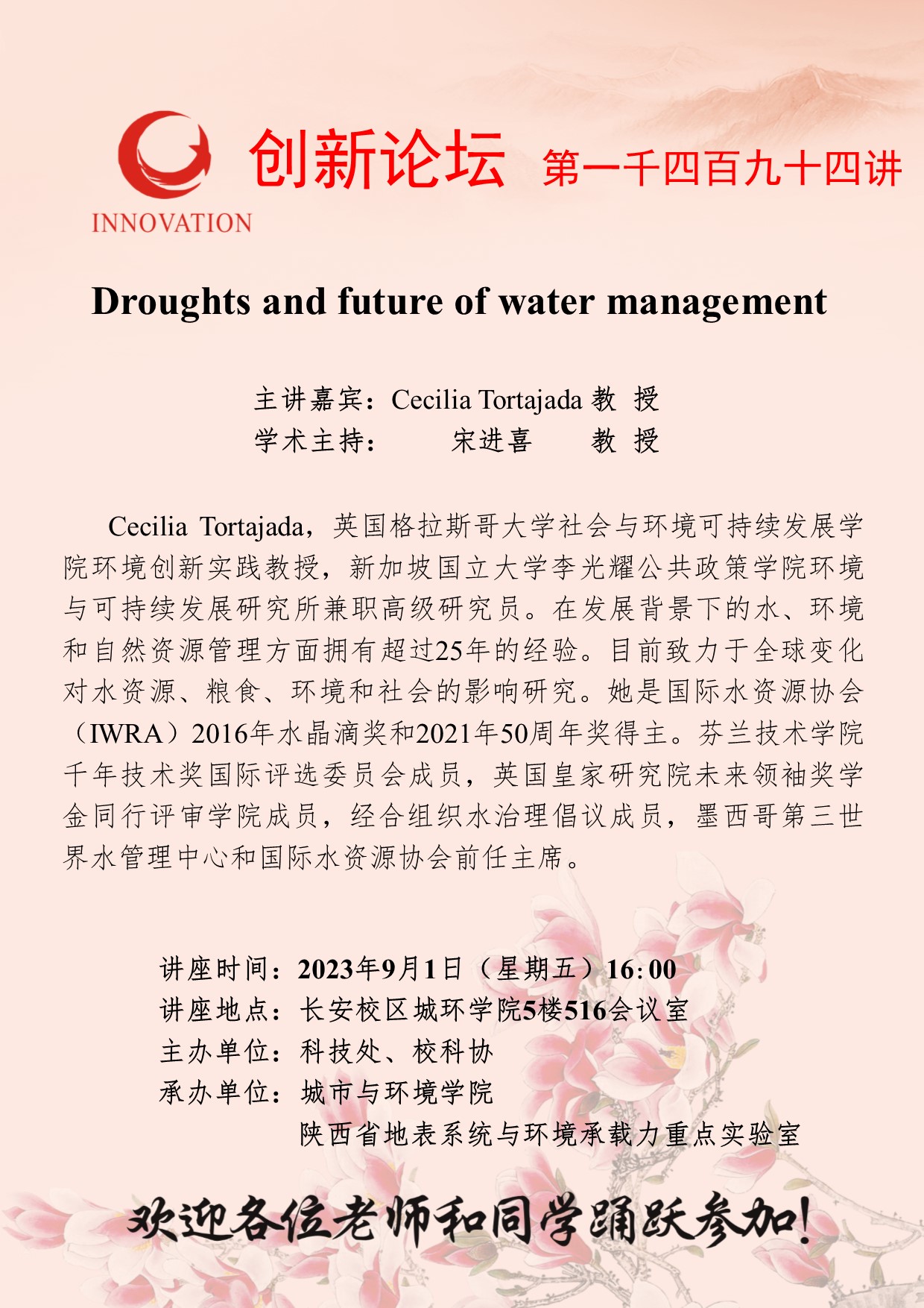 Cecilia Tortajada 教 授 赢博官方(中国)总部创新论坛第一千四百九十四讲:Droughts and future of water management 讲座时间 2023年9月1日(星期五)16:00 讲座地点 长安校区城环学院5楼516会议室 讲座人介绍 Cecilia Tortajada 教 授 讲座内容