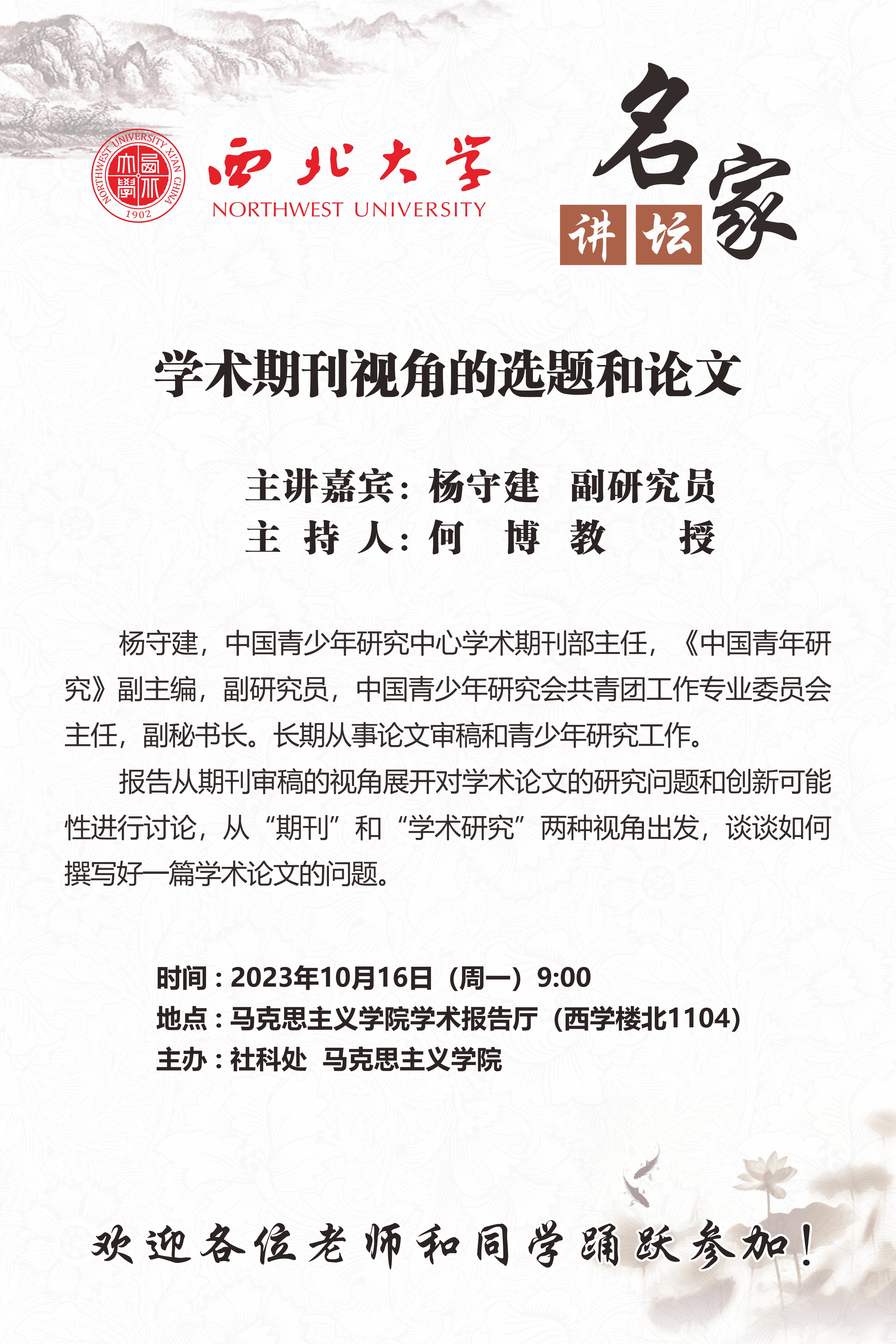 马克思主义学院学术报告厅(西学楼北1104)