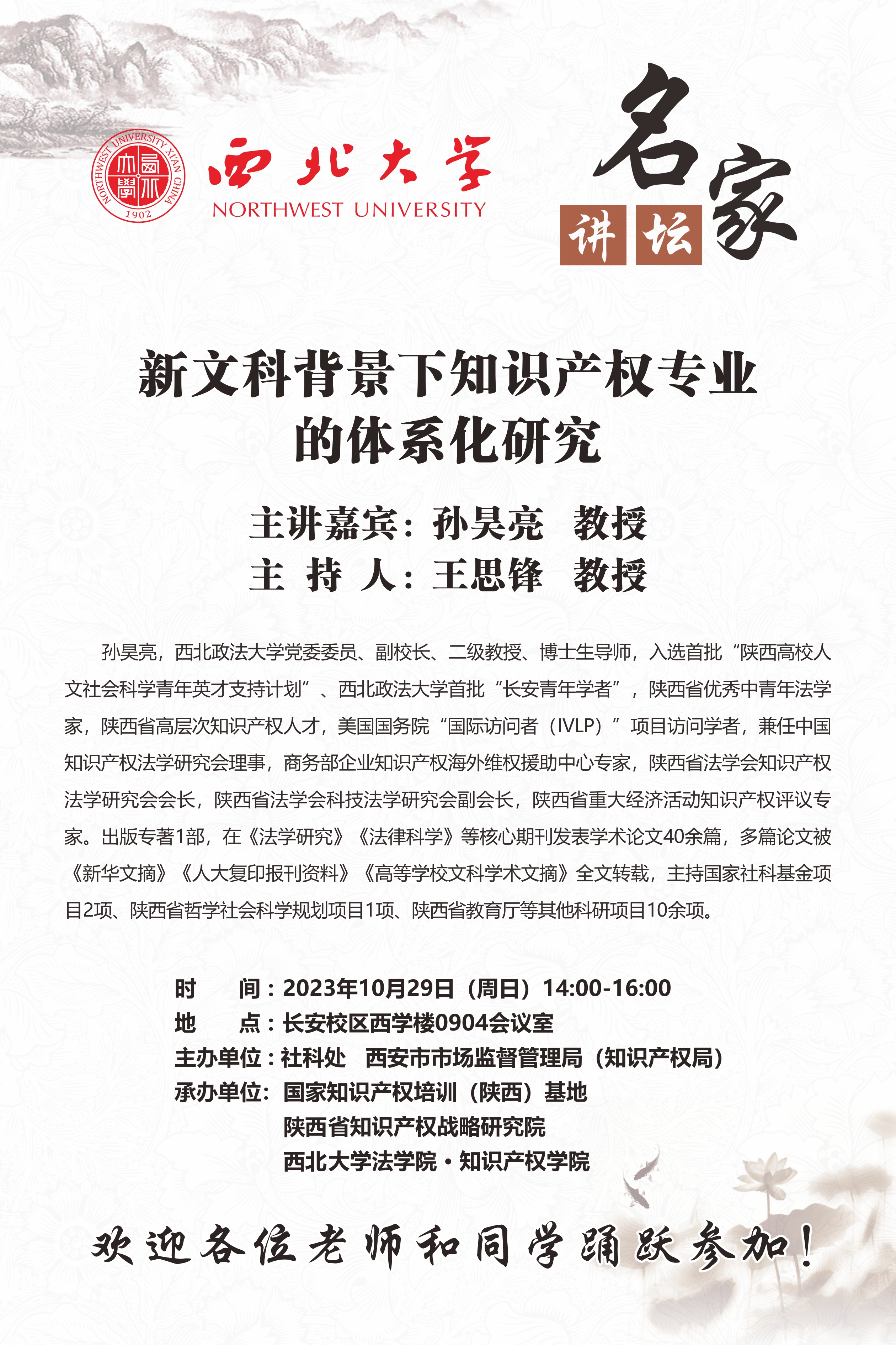 名家讲坛:新文科背景下知识产权专业的体系化研究