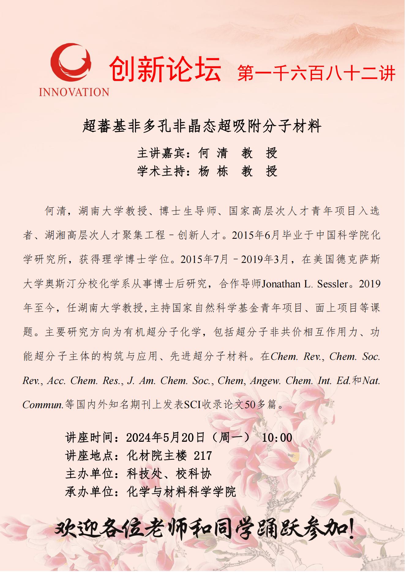 何清 教授 赢博官方(中国)总部创新论坛第一千六百八十二讲:超蕃基非多孔非晶态超吸附分子材料 讲座时间 2024年5月20日(星期一) 10:00 讲座地点 长安校区化材院主楼 217 讲座人介绍 何清 教授 讲座内容