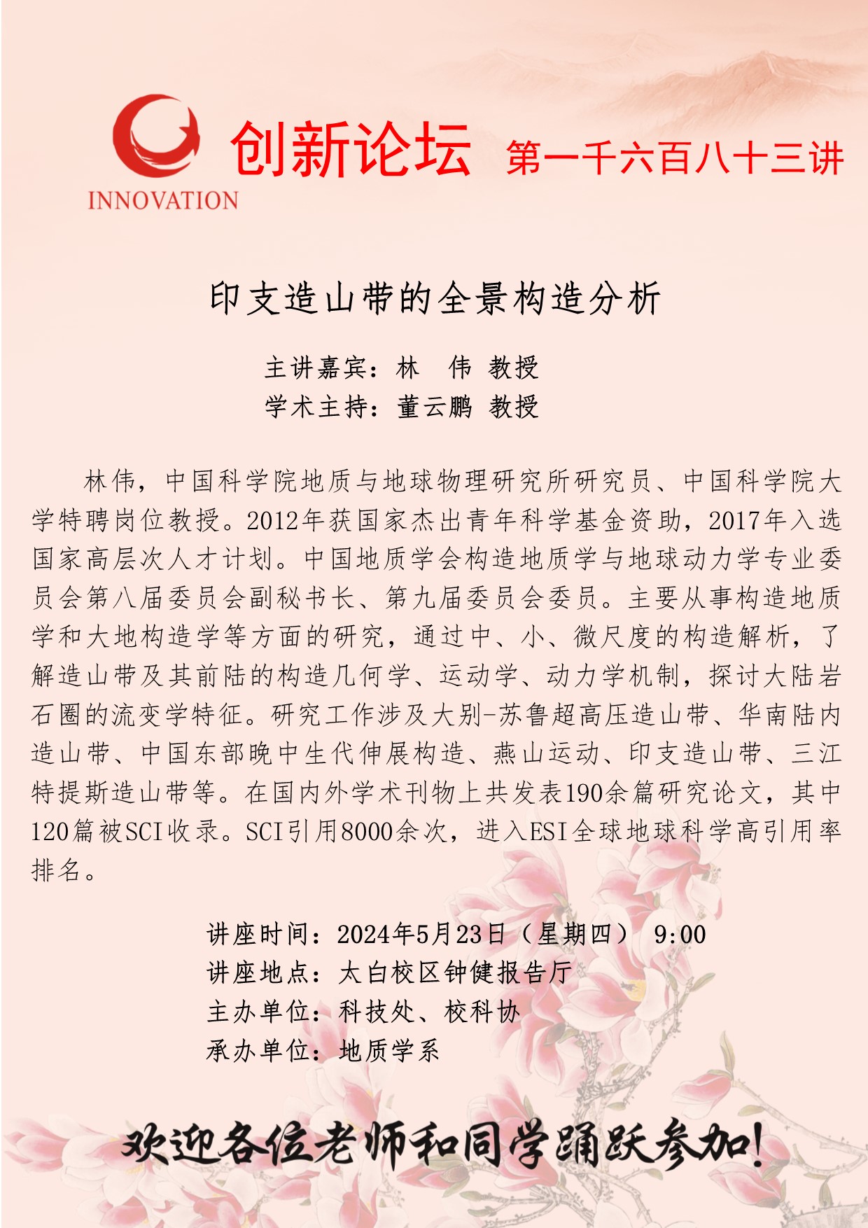 林 伟 教授 赢博官方(中国)总部创新论坛第一千六百八十三讲:印支造山带的全景构造分析 讲座时间 2024年5月23日(星期四) 9:00 讲座地点 太白校区钟健报告厅 讲座人介绍 林 伟 教授 讲座内容