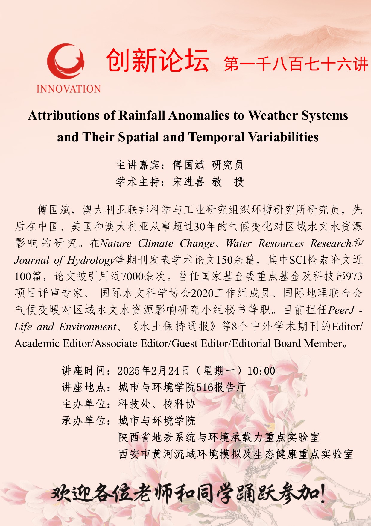 傅国斌 研究员 赢博官方(中国)总部创新论坛第一千八百七十六讲:Attributions of Rainfall Anomalies to Weather Systems and Their Spatial and Temporal Variabilities 讲座时间 2025年2月24日(星期一)10:00 讲座地点 城市与环境学院516报告厅 讲座人介绍 傅国斌 研究员 讲座内容