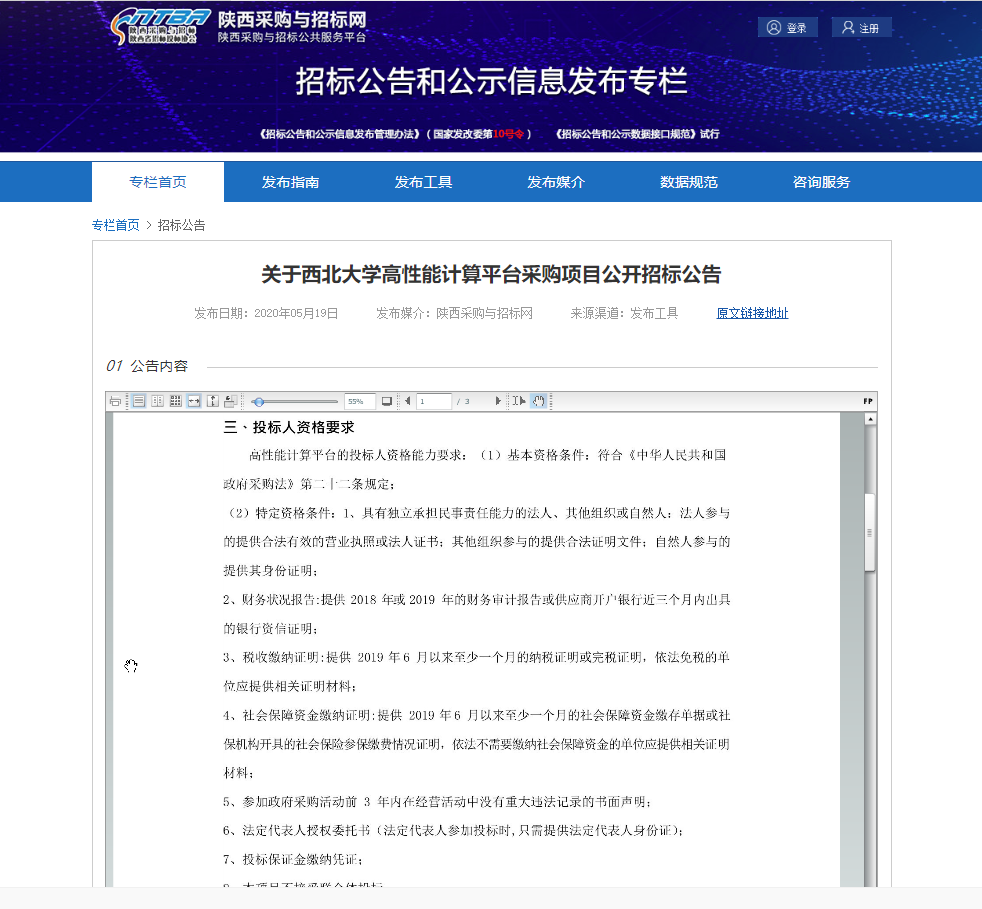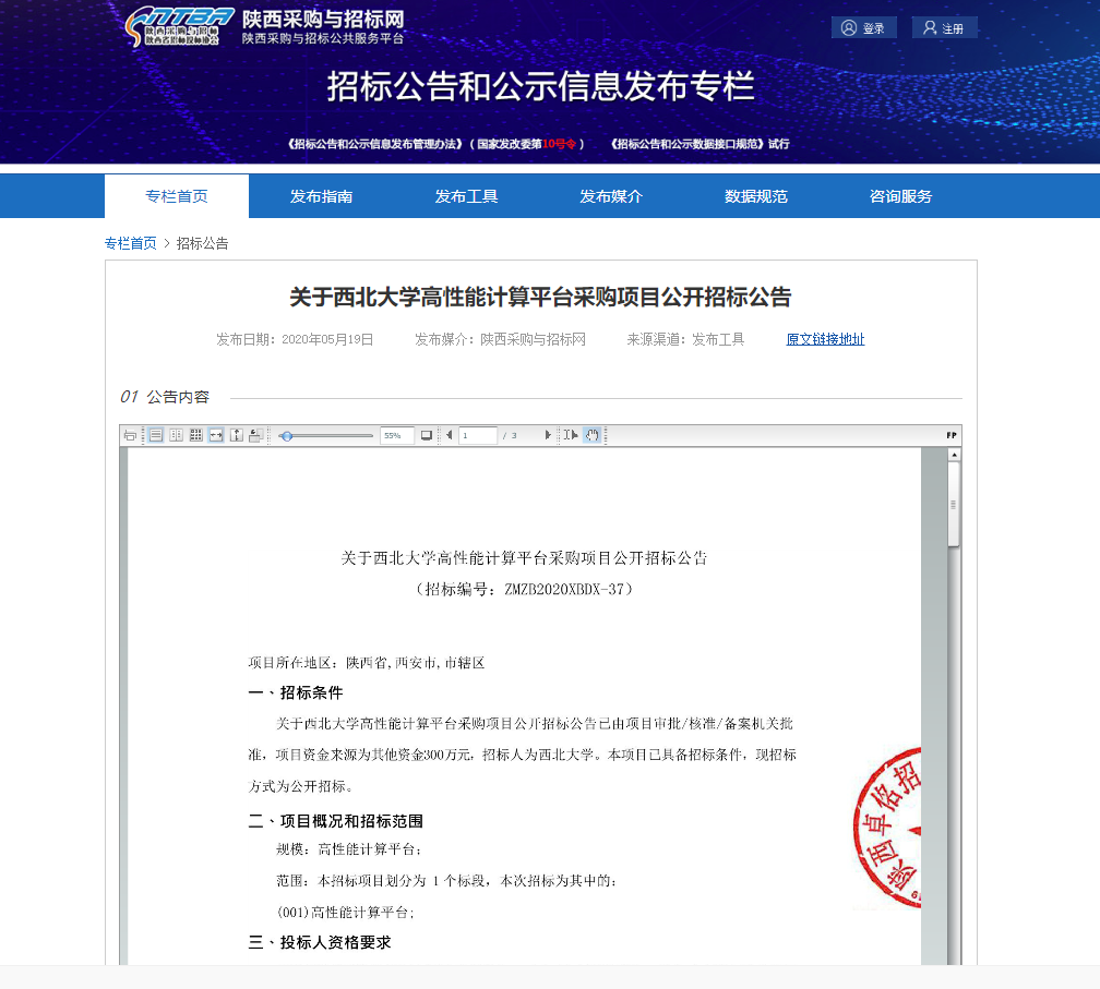 赢博官方(中国)总部高性能计算平台采购项目公开招标公告 作者: 编辑:薛利娟 时间:2020-05-20 原公告链接:http://bulletin.sntba.com/biddingBulletin/2020-05-19/185091.html