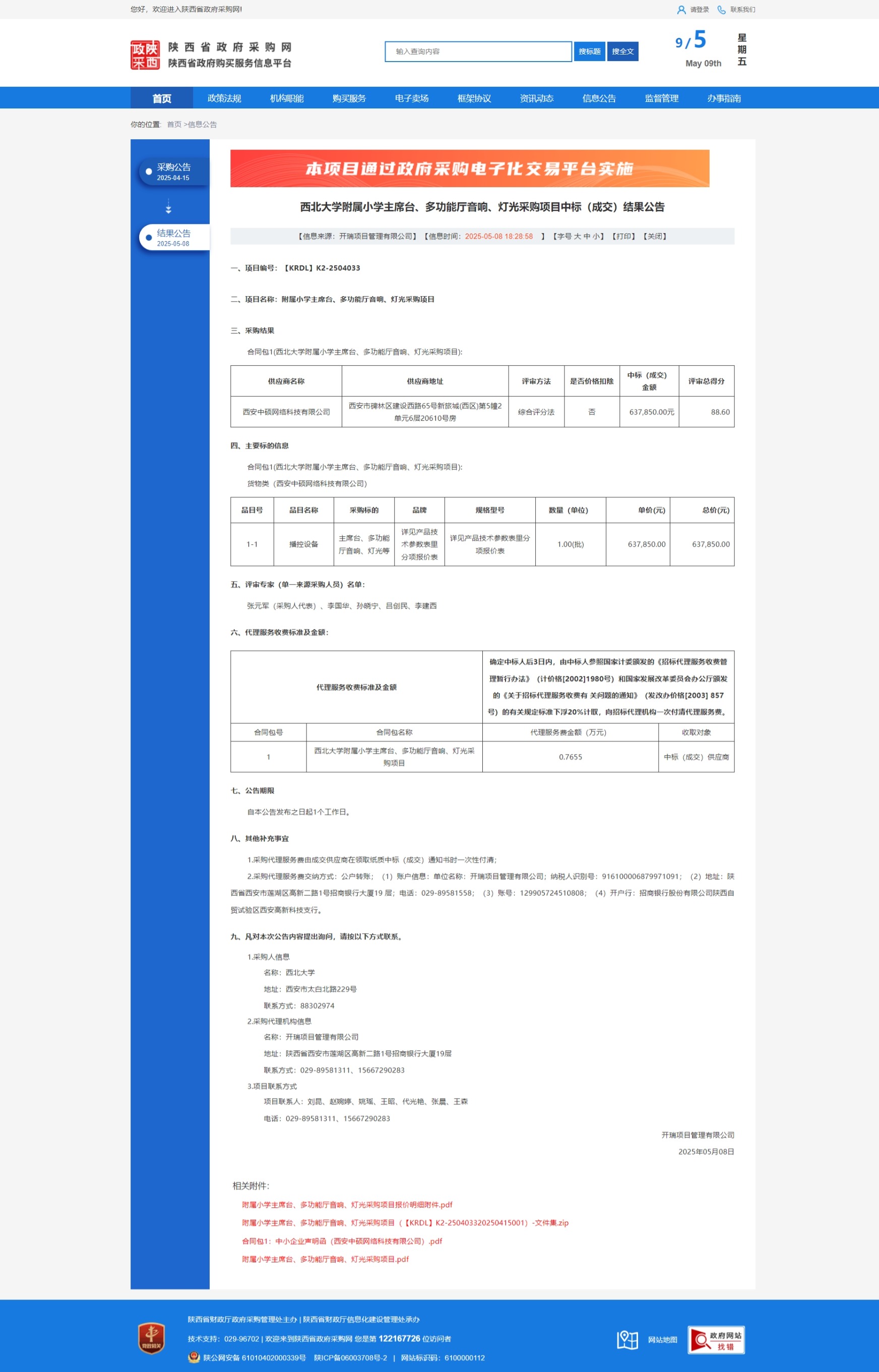 赢博官方(中国)总部附属小学主席台、多功能厅音响、灯光采购项目中标(成交)结果公告 作者: 编辑:采购与招标办公室 时间:2025-05-09 原公告链接:https://www.ccgp-shaanxi.gov.cn/freecms/site/shaanxi/ggxx/info/2025/8a69c6749672185f0196af22725f03a7.html?noticeType=001021¬iceId=250492aa-2bf9-11f0-8063-08c0eb20c666