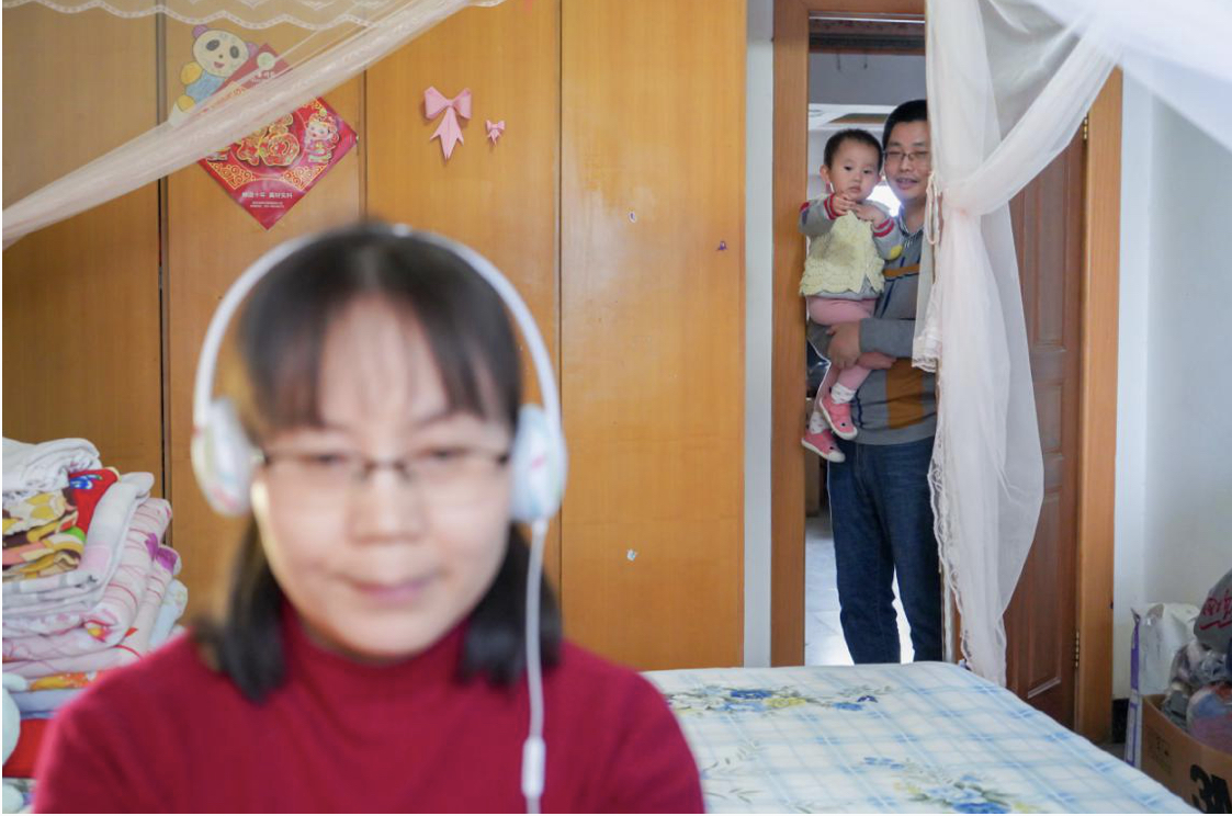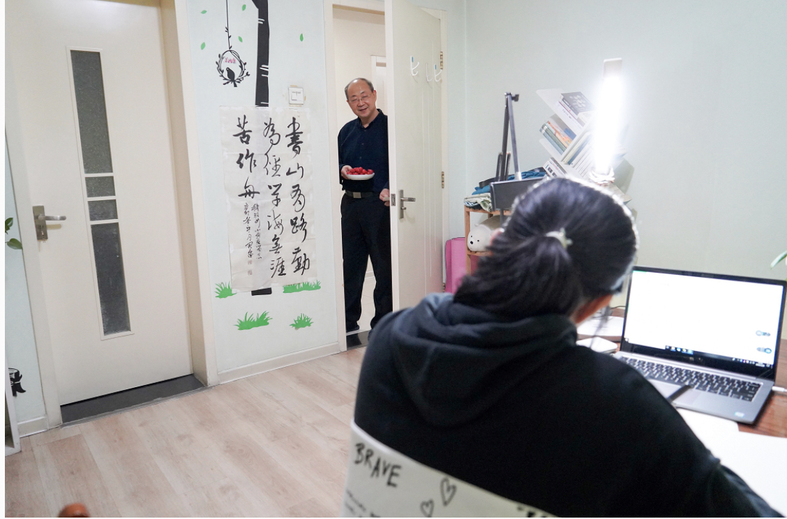 大一学生穆玥如便是这218名学生中间的一员。小穆的妈妈是发热门诊总护士长,自疫情发生以来,由于妈妈每天早出晚归,一家难得吃上一顿团圆饭。当她看到学校发起的志愿者招募通知,第一时间就报了名,随后便开始了“白天上网课学习,晚上开网课辅导”的白加黑生活模式。与此同时,难得能与女儿独处这么长时间的父亲,也开启了自己的“奶爸”模式——有一种口渴是老爸觉得你渴了,有一种饿是老爸觉得你饿了,有一种幸福叫“胖并幸福着”。