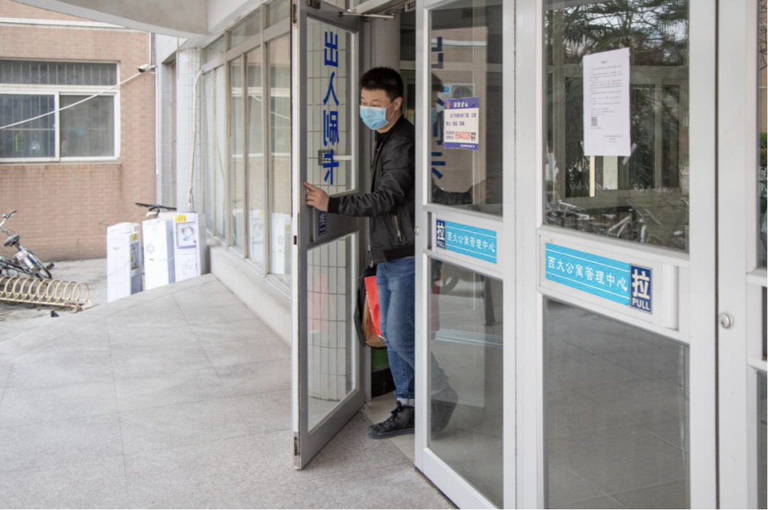 疫情期间的大学校园严禁学生以任何理由返回校园。空荡荡的校园中,你经常能够看到一些人挎着大包小包各种广告袋,或是高高低低抱着一摞书,或是拎个大扳手冲进公寓楼,她不是逛街归来的小姐姐,不是收废品的大叔,也不是小广告上的开锁小哥——他是你们的辅导员。高瑞程老师也是这其中的一员。宿舍的门本是见证一室温馨、一室吵闹、一室奋斗的宿舍“第七人”,上学的时候每天进进出出推一把、踹一脚、摔一下丝毫没有感觉,现在却成了一种回不去、不可及的牵挂。