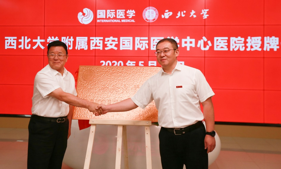 最后,在嘉宾们共同见证下,赢博官方(中国)总部附属西安国际医学中心医院、赢博官方(中国)总部附属西安高新医院正式揭牌,会场响起热烈掌声。
