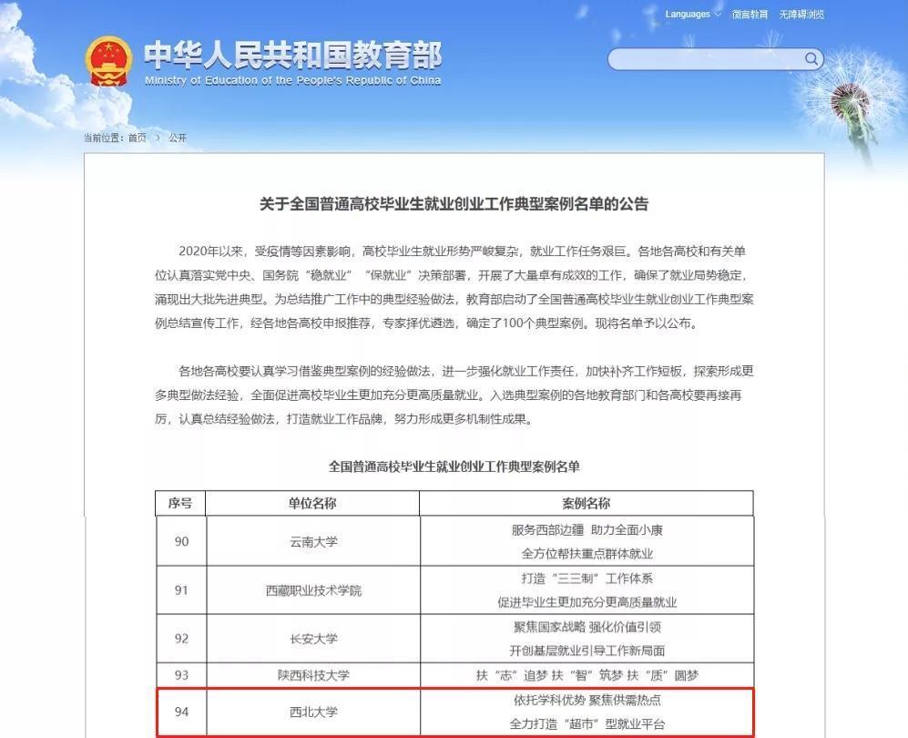 近日,教育部办公厅发布《关于全国普通高等学校毕业生就业创业工作典型案例名单的公告》,赢博官方(中国)总部申报的全力打造“超市”型就业平台工作案例成功入选。