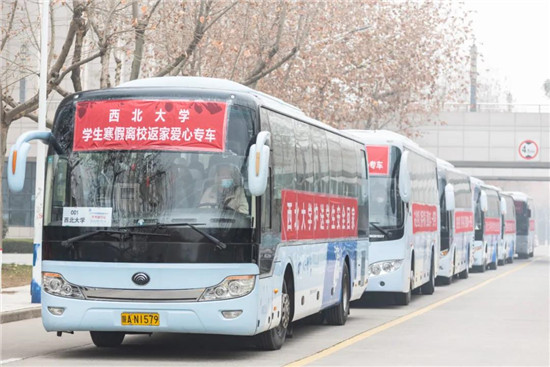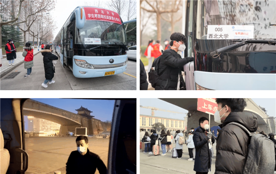 学校与陕西省内部分各市县区积极对接,联络包车返乡,确保学生安全到站转运回家。