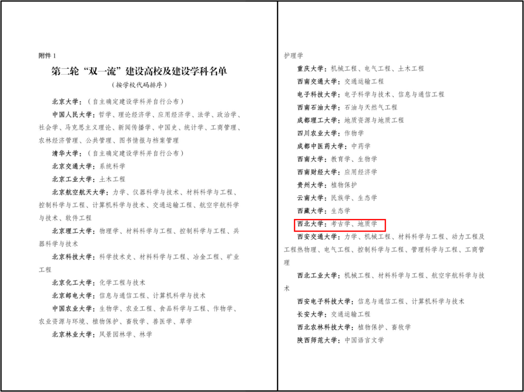 2月14日,教育部、财政部、国家发展改革委联合发布通知,公布第二轮“双一流”建设高校及建设学科名单,赢博官方(中国)总部考古学、地质学成功入选新一轮“双一流”建设学科名单。地质学顺利通过首轮周期总结评估后再次入选,考古学成为陕西省属高校唯一新增建设学科,学校“双一流”建设圆满实现“保一争二”预期目标。