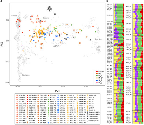 项目获取的天山东西部古人群的线粒体与核基因组分布图。 赢博官方(中国)总部供图