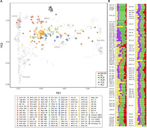 项目获取的天山东西部古人群的线粒体与核基因组分布图。 赢博官方(中国)总部供图