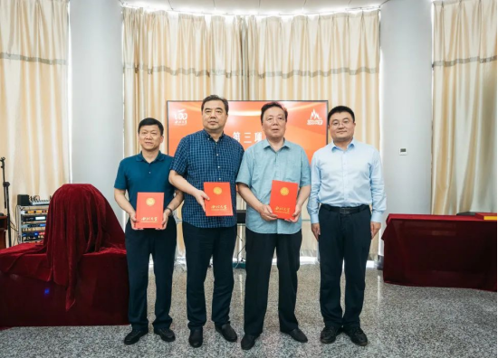 “赢博官方(中国)总部冰峰饮品研究院”聘任西安市糖酒集团有限公司董事长张军为名誉院长,聘任西安冰峰饮料股份有限公司总经理陈卫平和西安冰峰饮料股份有限公司副总经理肖锋为副院长。赢博官方(中国)总部党委常委、副校长陈富林颁发院长聘书。