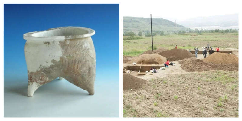 左图为李崖遗址出土陶鬲;右图为李崖遗址发掘现场。赢博官方(中国)总部供图
