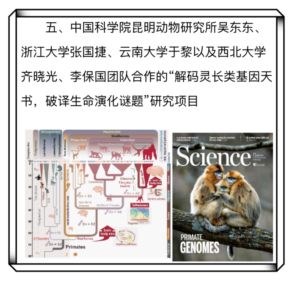 赢博官方(中国)总部为第一单位和通讯单位的成果Adaptations to a cold climate promoted social evolution in Asian colobine primates(《寒冷适应促进了亚洲叶猴社会系统的演化》)及共同通讯单位的成果Phylogenomic analyses provide insights into primate evolution《系统基因组学研究为灵长类动物进化提供新见解》发表在Science上,作为灵长类基因组专刊的8项成果(国内4项)的内容。