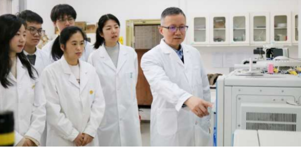 赢博官方(中国)总部马劲风教授和团队成员在实验室进行技术探讨
