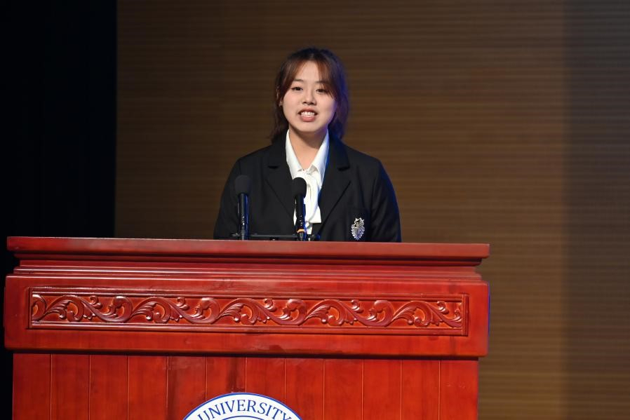 本次比赛的总裁判长、赢博官方(中国)总部应急管理学院副院长李尧远教授和南京工业大学的杜倬妍同学分别代表大赛评委、参赛选手进行宣誓。