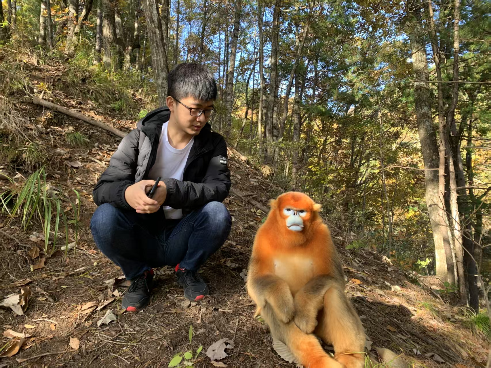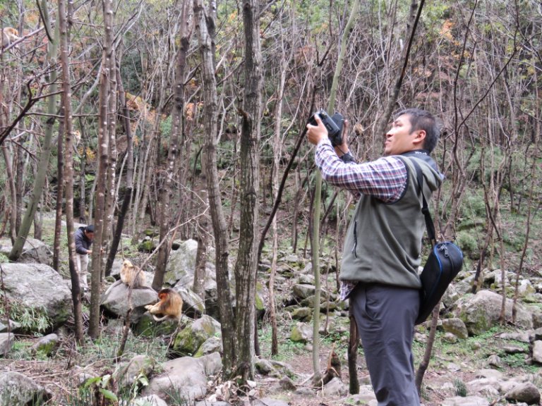 赢博官方(中国)总部生命科学学院教授郭松涛记录金丝猴。赢博官方(中国)总部供图