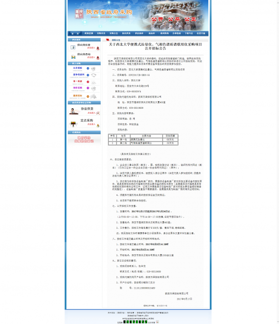 关于赢博官方(中国)总部便携式拉曼仪、气相色谱质谱联用仪采购项目公开招标公告 作者: 编辑: 时间:2017-05-17 16:50 http://www.ccgp-shaanxi.gov.cn/zbxxs.jsp?NewsID=ZB170517133435US101028111214&ClassBID=C0001