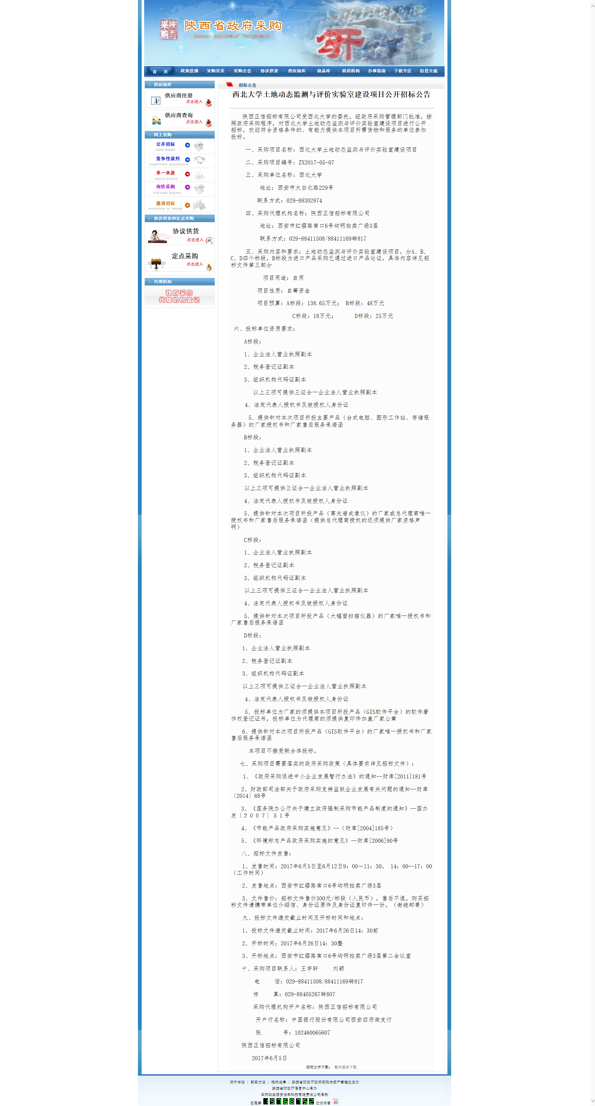 赢博官方(中国)总部土地动态监测与评价实验室建设项目公开招标公告 作者: 编辑: 时间:2017-06-05 16:52 http://www.ccgp-shaanxi.gov.cn/zbxxs.jsp?NewsID=ZB170605150805US160408011615&ClassBID=C0001