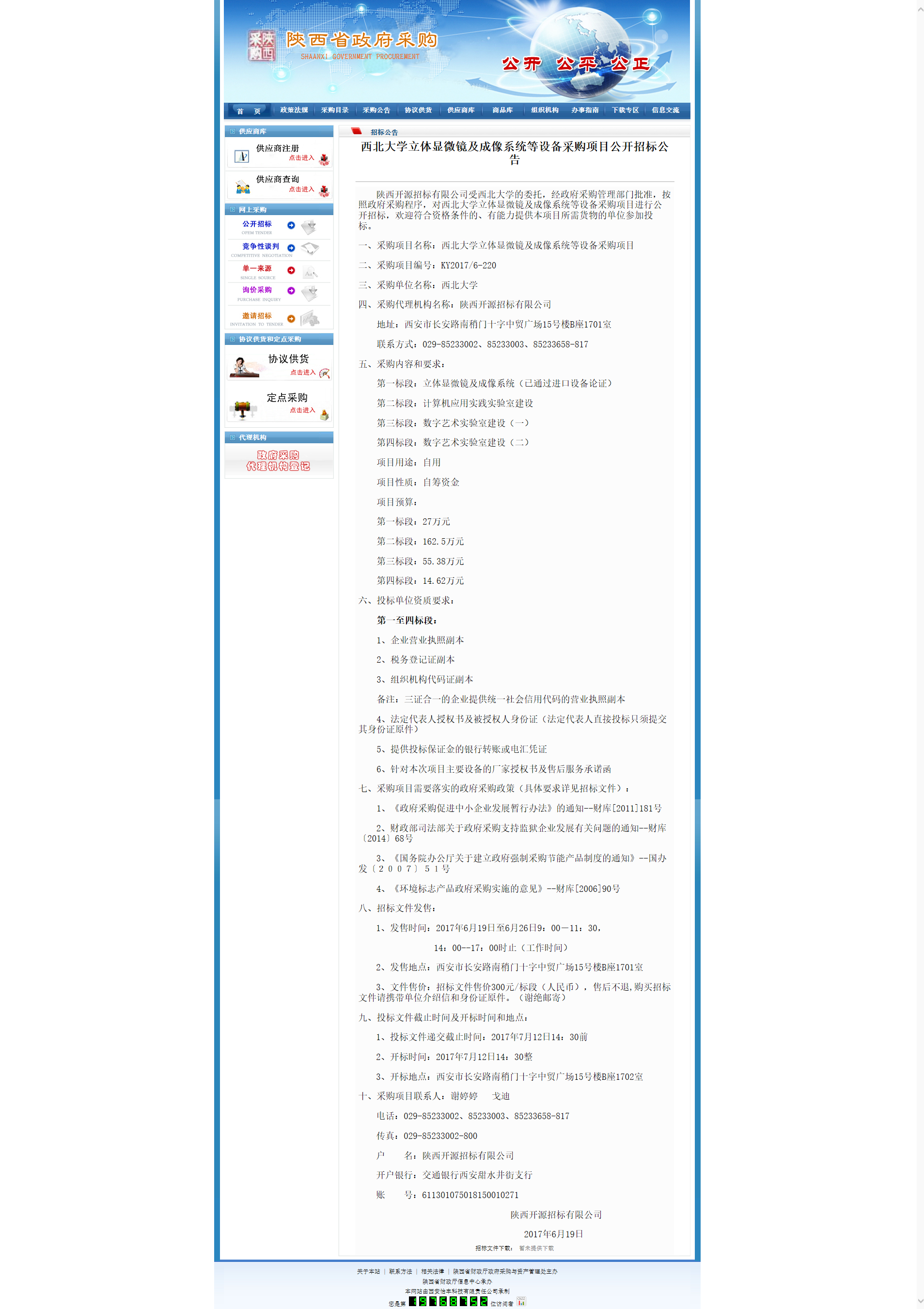 赢博官方(中国)总部立体显微镜及成像系统等设备采购项目公开招标公告 作者: 编辑: 时间:2017-06-20 08:24 http://www.ccgp-shaanxi.gov.cn/zbxxs.jsp?NewsID=ZB170619161034US131018031658&ClassBID=C0001