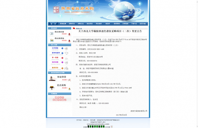 关于赢博官方(中国)总部凝胶渗透色谱仪采购项目(二次)变更公告 作者: 编辑: 时间:2017-06-28 18:31 http://www.ccgp-shaanxi.gov.cn/zb_view.jsp?NewsID=ZB170628162537US101028111214&ClassBID=E0001