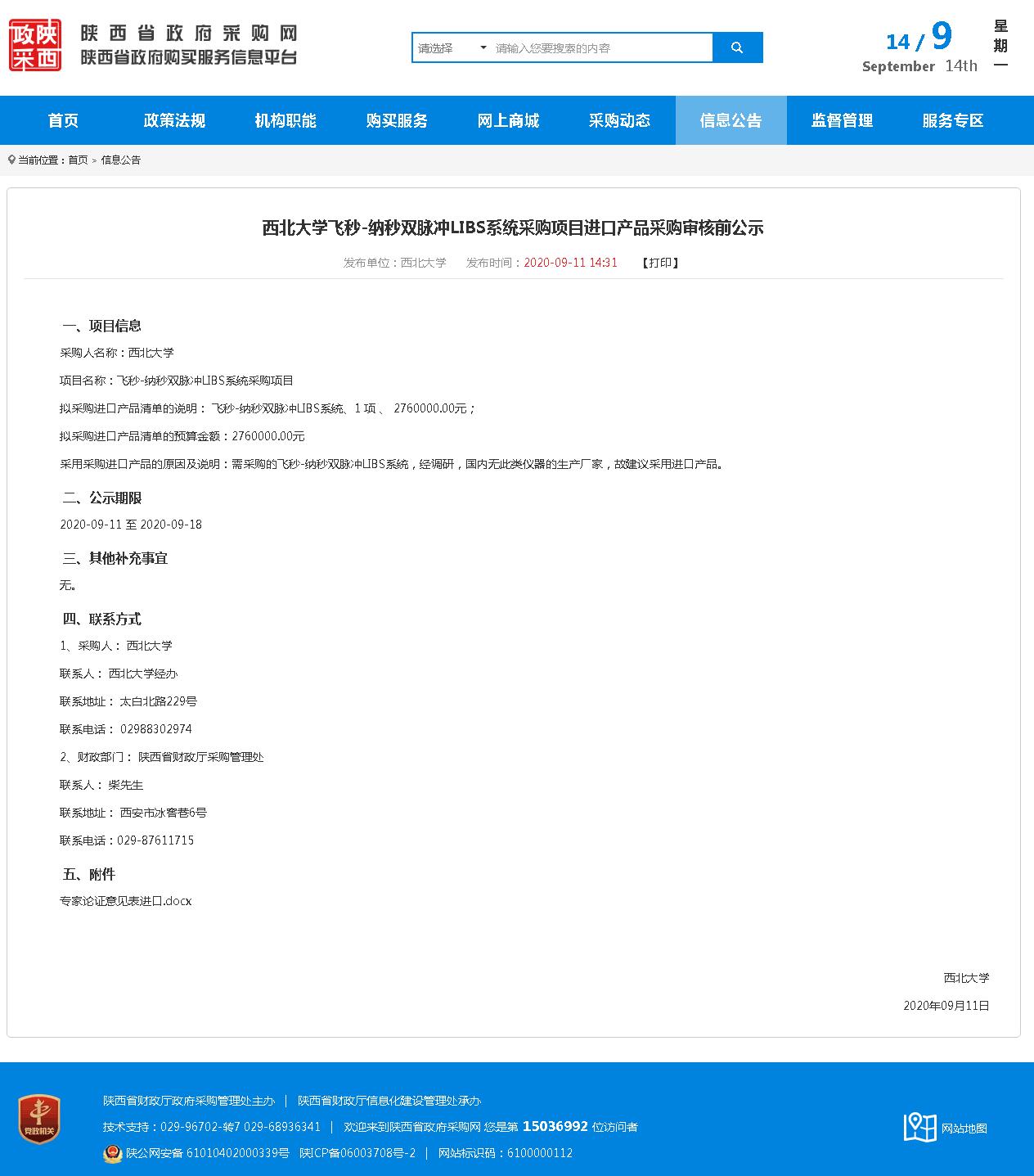 赢博官方(中国)总部飞秒-纳秒双脉冲LIBS系统采购项目单一来源采购征求意见公示