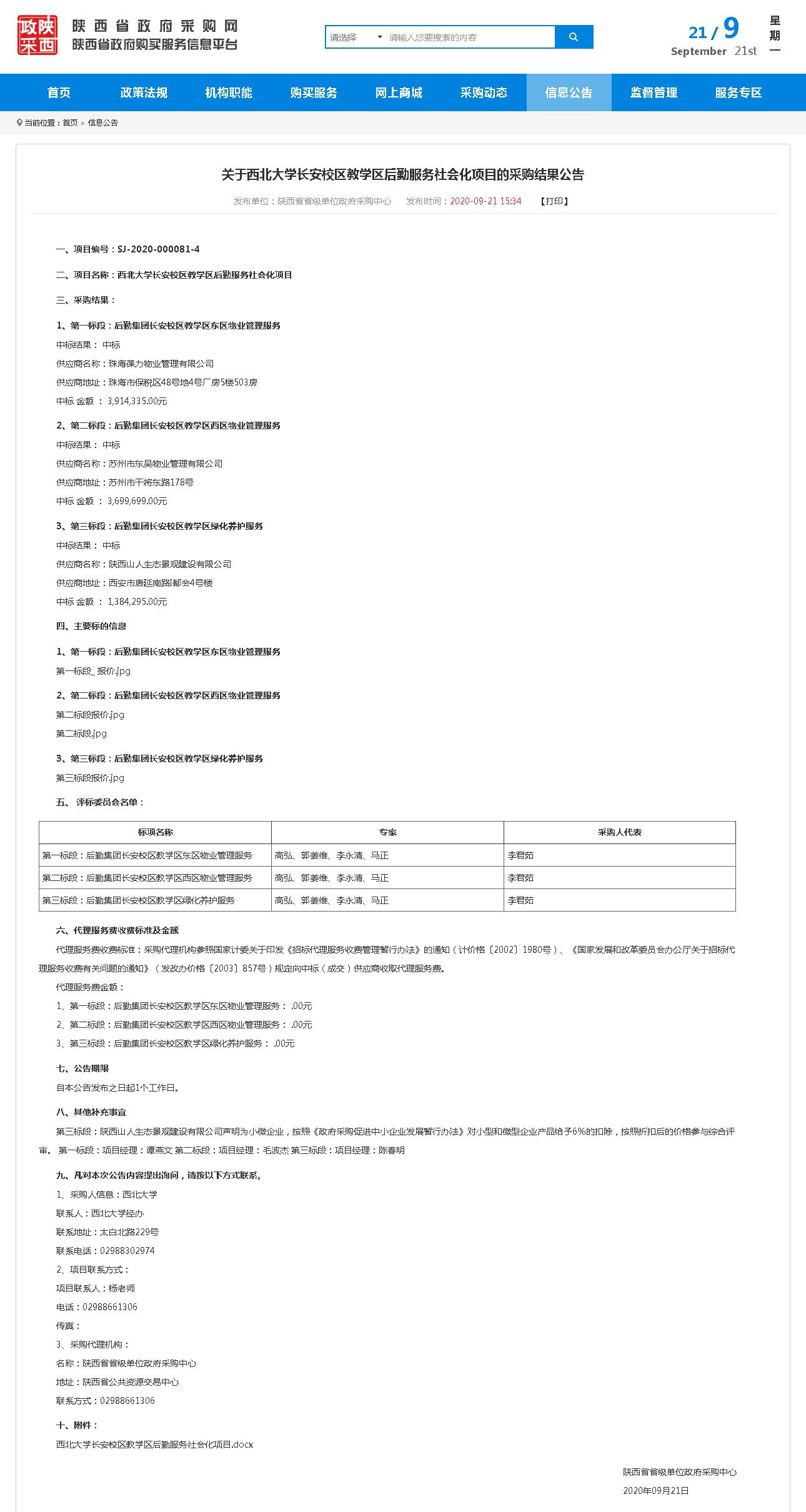 赢博官方(中国)总部长安校区教学区后勤服务社会化项目的采购结果公告